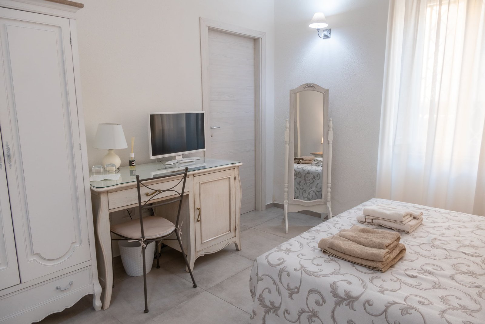 La camera è nuovissima, dotata di connessione WiFi gratuita, frigobar, climatizzatore, ampio armadio, scrivania, cassetta di sicurezza, Tv a schermo piatto, bagno privato e balconcino
